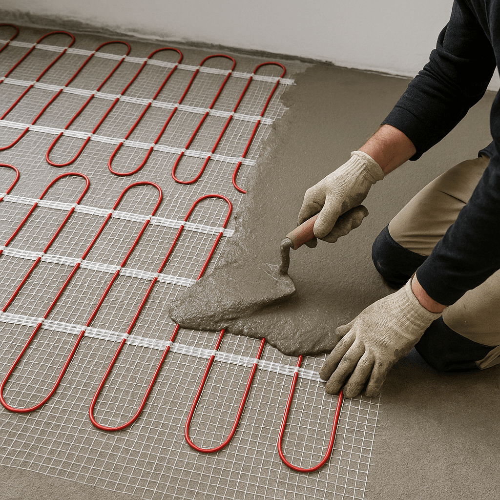 Jedan od najboljih načina za iskorištavanje potencijala električnog podnog grijanja je ugradnja grijaćih kabela u glazuru. Smještanjem grijaćih kabela u donji dio glazure, ona postaje vrijedan spremnik topline. U tom slučaju, za zagrijavanje glazure a sa time i same prostorije može se koristiti jeftinija noćna tarifa obračuna potrošnje struje. Osim toga, za zagrijavanje glazure se može koristiti i višak struje proizvedene fotonasponskom elektranom. Glazura treba biti kvalitetno toplinski izolirana prema ostatku građevinske konstrukcije.