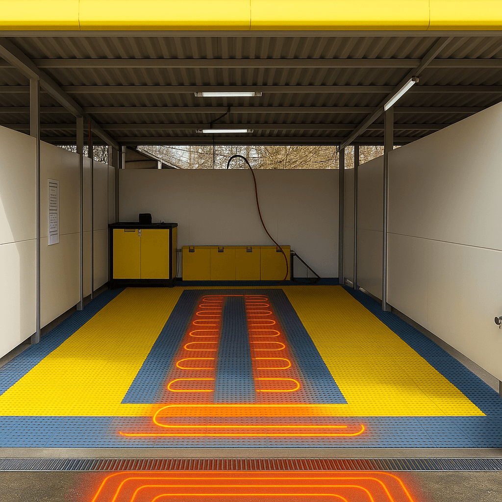 Klijent u Velikoj Gorici upravlja samoposlužnom autopraonicom. Zimi se javlja veliki problem nakupljanja poledice i opasnosti od pada i ozljeda korisnika. Osim toga, svi odvodi se napune ledom što još dodatno pogoršava problem poledice. Odlučeno je da se stavlja novi tanki sloj asfalta, radi otpornosti na mokre uvjete. Na postojeći betonski sloj su pričvršćeni kabeli za asfalt Conergy Solutions SMCT-FE-30. Instalirana snaga po m2 je nešto veća od uobičajene radi kratkog vremena reakcije kod uključivanja. Radi poboljšanja energetske bilance, grijaći kabeli se uključuju samo kada korisnik pere vozilo i isključuju se zakašnjelo dok pod autopraonice nije potpuno bez leda.